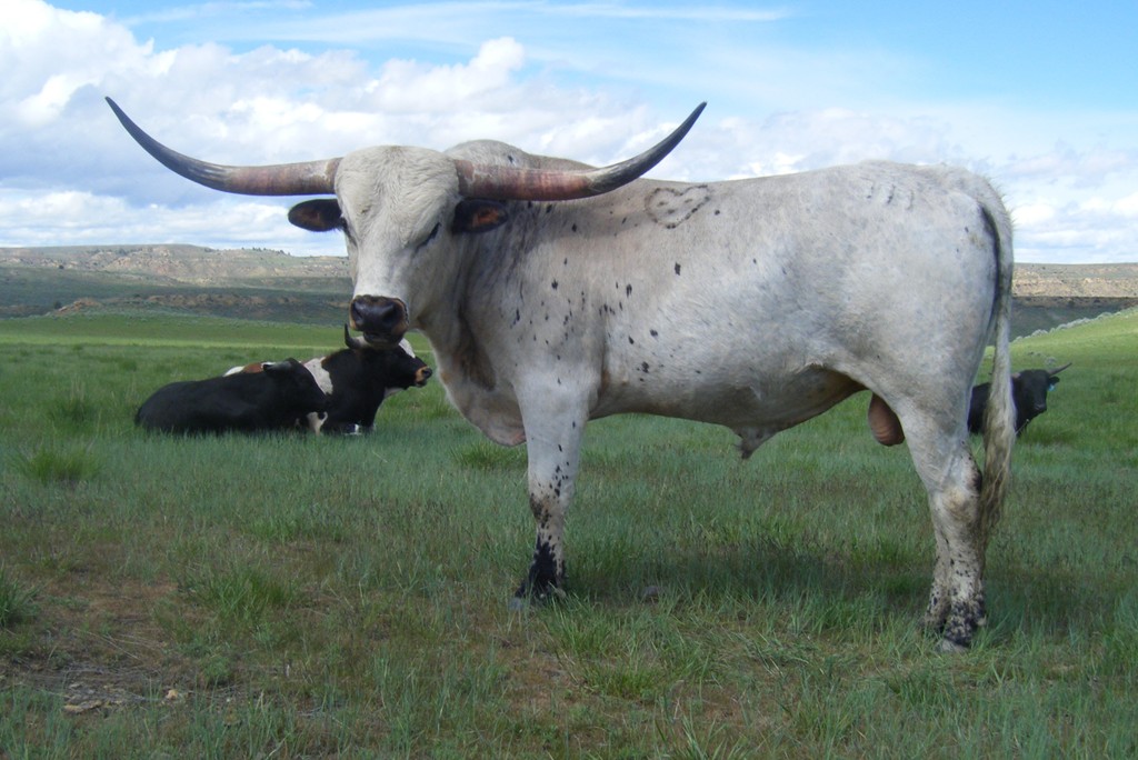 Top Agent 007 is a tremendous young bull out of Top Caliber and a great producing Shadow daughter,Sound Of Silence.This bull is already over 74" tip to tip and many of his offspring show great horn coming on.He is turning into a light blue color.We like him alot.