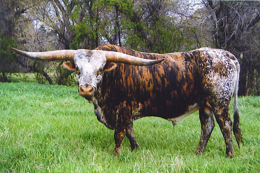 Tiger Eye is a very exciting young herd sire.He is one of the wildest colored bulls we have ever seen with very good heavy flat horns.We think he is going to be great.
