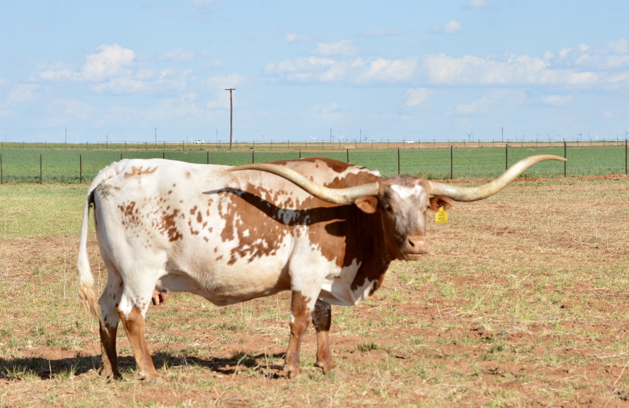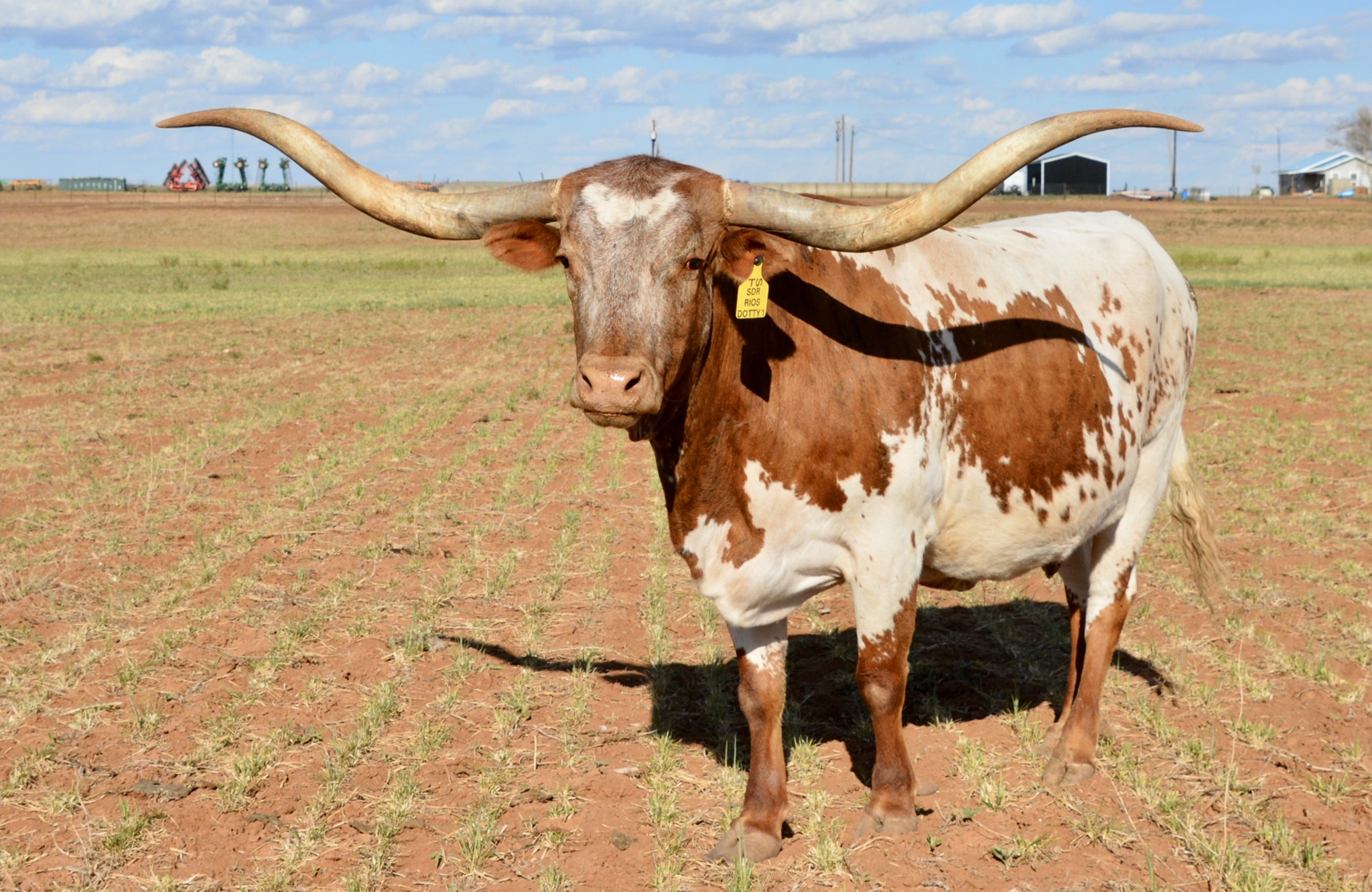 84.25"TTT daughter of JP Rio Grande, and out of the famous Delta Dotty, who is a daughter of Emperor and Delta Hope. Proven genetics on top and bottom of her pedigree for size, color, and horn. She is an all around mother and produced, TS Lone Star, an 82" TTT son that we have used for several years as a herd sire. He produced, 93" TTT, TS Lone Star Lawman, that is 4 years old and one of our herd sires now. Dotty has an udder that can feed an army! Her offspring are Millennium Futurity eligible.