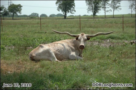 Look at this beautiful cow! Dora has fantastic tight twist in her horns that are just amazing. She has just over 72" TTT even with all of that twist. Dora passed away on January 21, 2013 just shy of her 20th birthday.