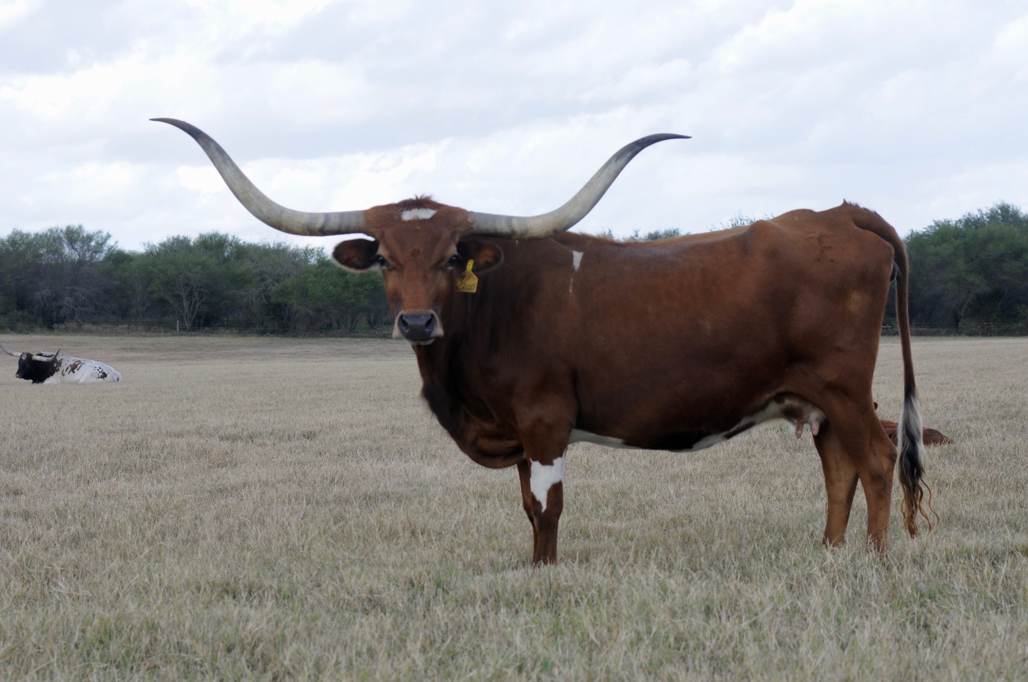 Classic Longhorn cow that is a tremendous mother that puts together a big bodied calf. Her genetic impact on our herd is very important to us.