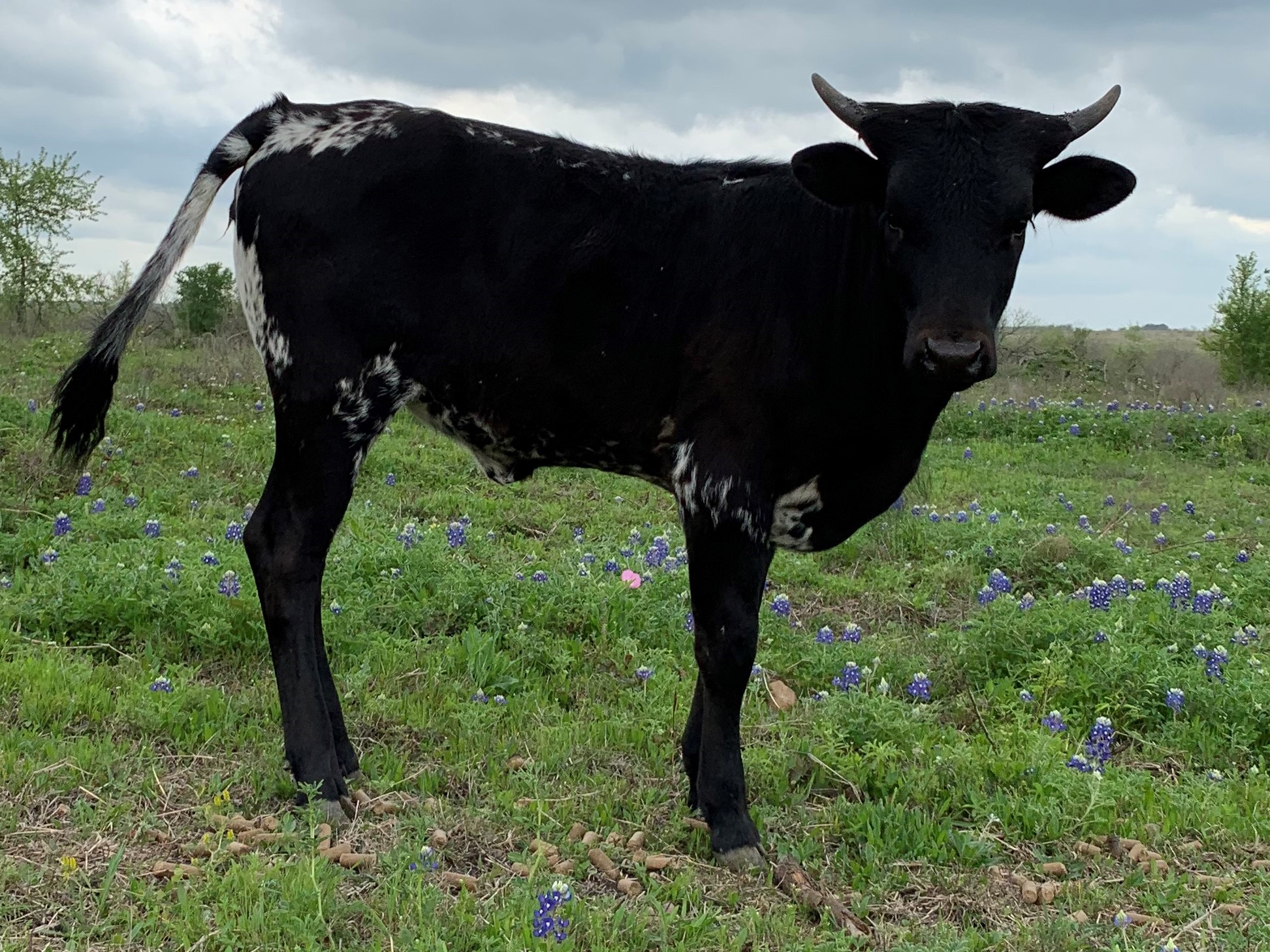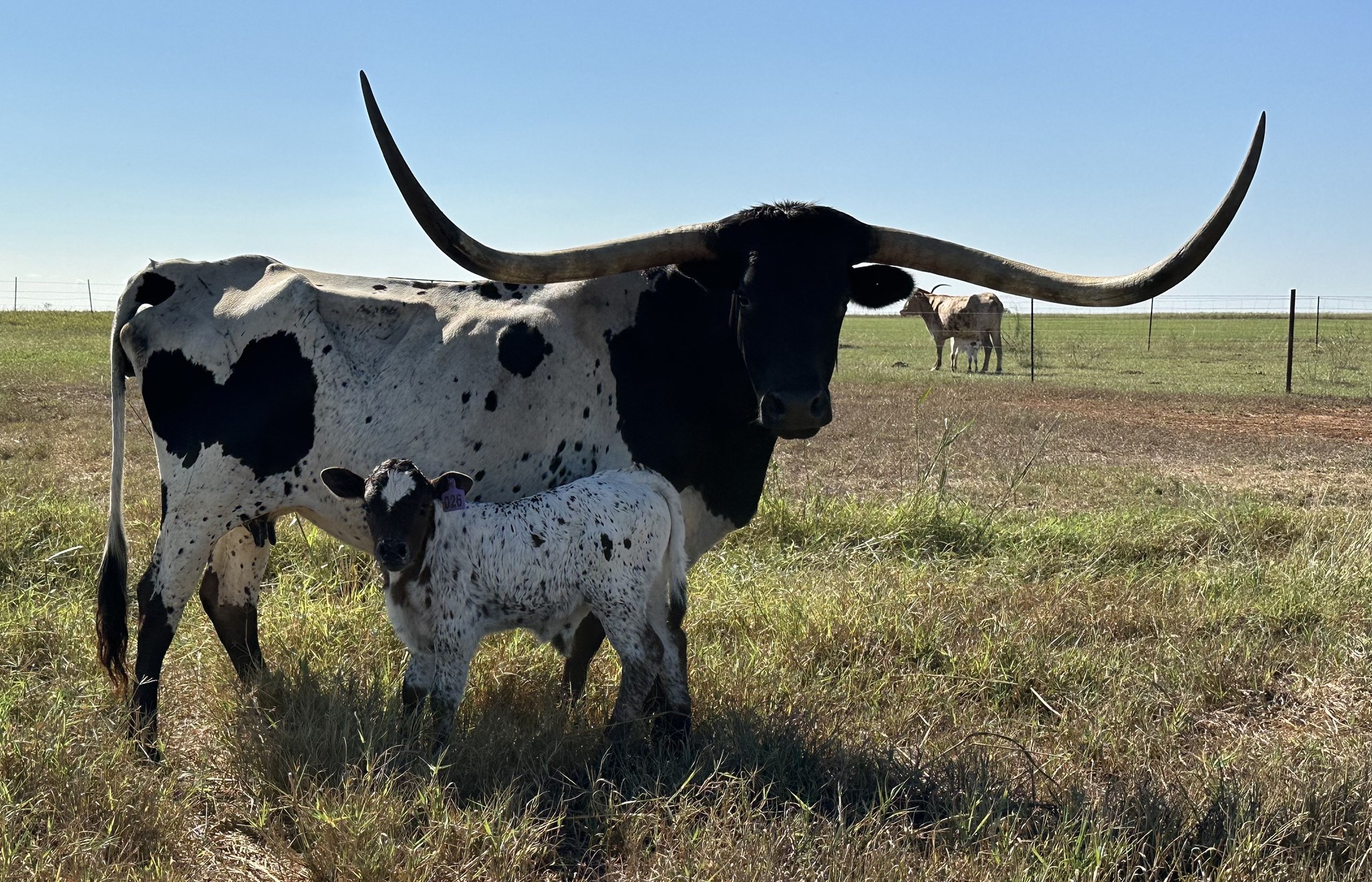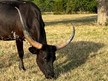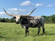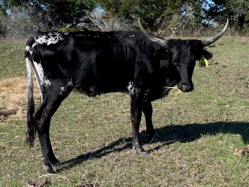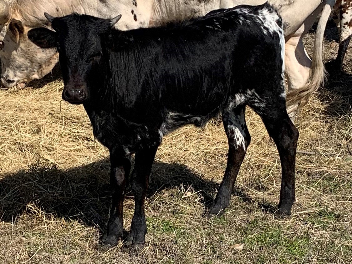 Her Grandmother is a almost 90' twisty cow we sold at the Legacy. Her mother is a beautiful black speckled cow in the mid 70's with over 100"total horn that is starting to roll out. Who knows how she will turn out.